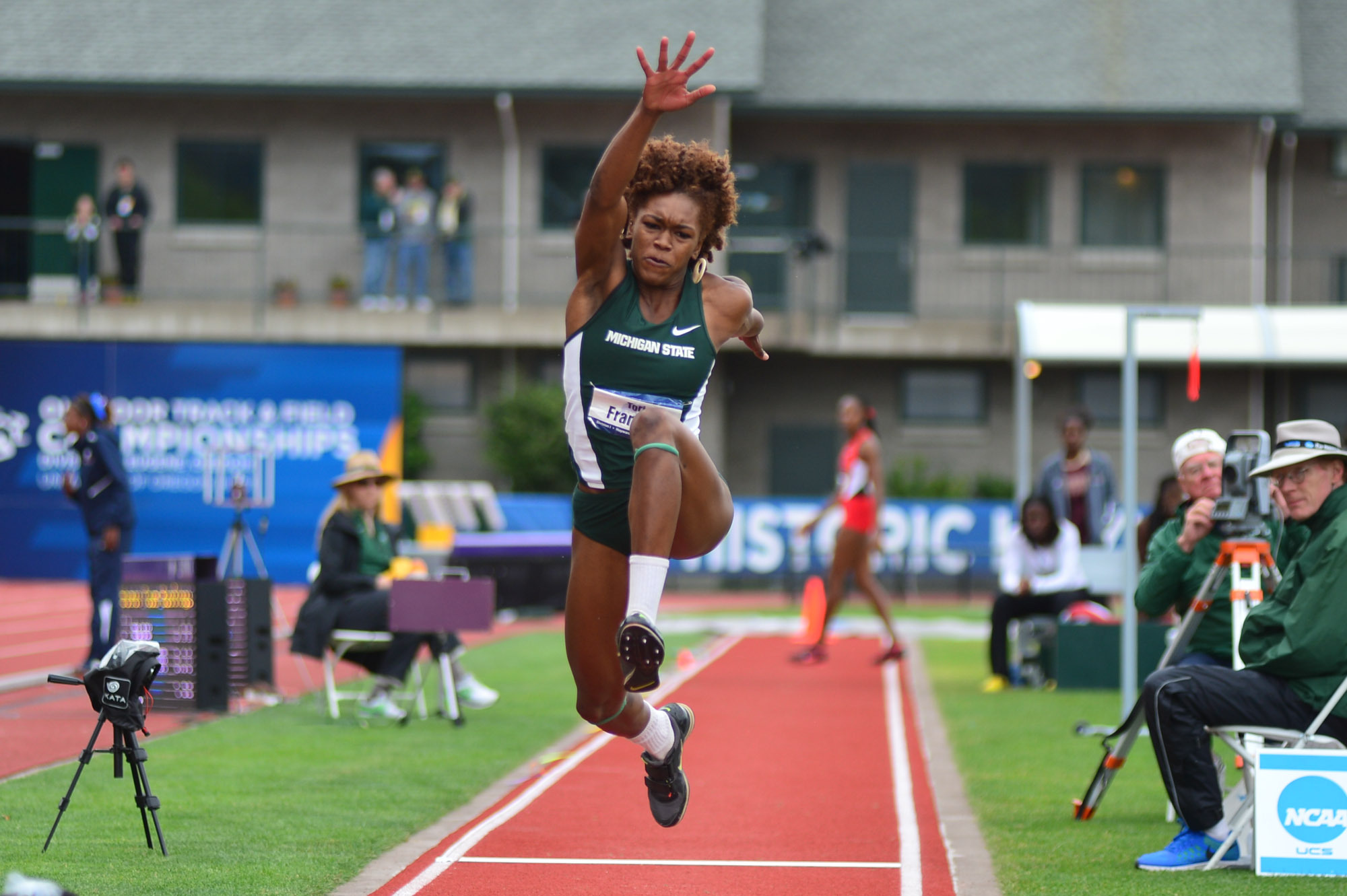 Franklin’s athletic career began at a young age. “I’ve always been an active child,” she explained. “Jumping around on the jungle gym, I did karate to dance classes, basketball, track and field, cross country for a little bit.” In high school, she found out just how far sports could take her. “I was told that I could pursue this in college and it would pay for my education and I was like, I’ll stick with this.” But she didn’t realize her own star potential until her freshman year in college.